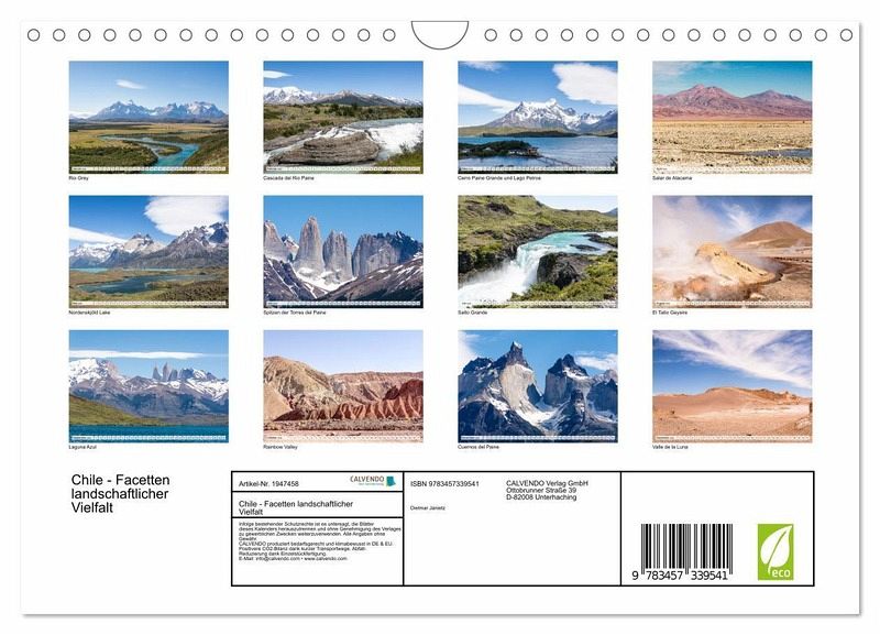 QUALITÄT - Hochwertiger Fotokalender mit 12 wunderschönen Motiven auf lichtbeständigem Bilderdruckpapier, robuste Spiralbindung mit Aufhängebügel.NACHHALTIG - deutliche Abfallreduzierung durch bedarfsgerechte Einzelstückfertigung, umweltfreundliches FSC-zertifiziertes Papier, Produktion in Deutschland, klimabewusste Logistik.PERFEKTES GESCHENK - Kalender für Freunde und Familie, für Kinder und Erwachsene, jung und alt, zu Weihnachten, Geburtstag oder zwischendurch.VIELFALT - Bildkalender in verschiedenen Formaten, z.B. DIN A5, DIN A4, DIN A3 sowie DIN A2. Ob Naturmotiv, Gemälde oder Fotos, ideal für ein persönliches Wohlfühlambiente.Torres del Paine und Atacama: Eine Reise durch die majestätischen Landschaften Chiles von Autor(in): Dietmar Janietz