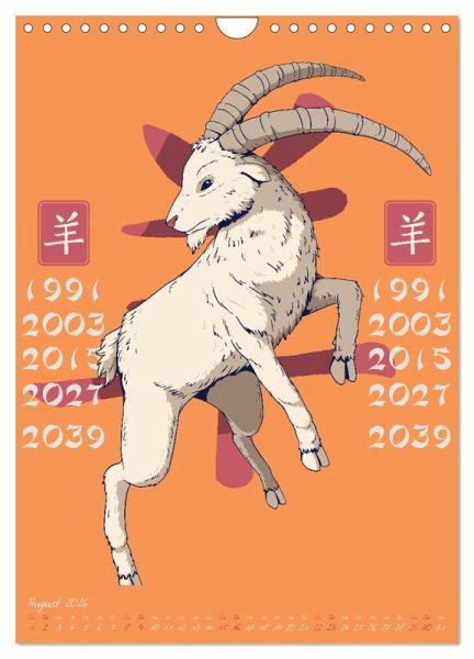 Welches Tierkreiszeichen bist du? Dem chinesischen Horoskop liegt dein Geburtsjahr zugrunde! Finde auf den 12 Kalenderseiten, neben den toll gestalteten Tierbildern, dein Geburtsjahr und ordne es dem jeweiligen Tier zu! Finde jeden Monat ein digital gestaltetes Bild eines der 12 Tiere im asiatischen Stil.