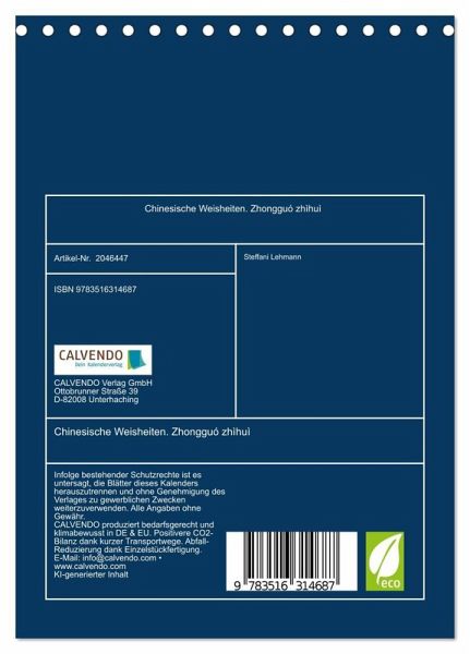 QUALITÄT - Hochwertiger Fotokalender mit 12 wunderschönen Motiven auf lichtbeständigem Bilderdruckpapier, robuste Spiralbindung.NACHHALTIG - deutliche Abfallreduzierung durch bedarfsgerechte Einzelstückfertigung, umweltfreundliches FSC-zertifiziertes Papier, Produktion in Deutschland, klimabewusste Logistik.PERFEKTES GESCHENK - Kalender für Freunde und Familie, für Kinder und Erwachsene, jung und alt, zu Weihnachten, Geburtstag oder zwischendurch.VIELFALT - Bildkalender in verschiedenen Formaten, z.B. DIN A5, DIN A4, DIN A3 sowie DIN A2. Ob Naturmotiv, Gemälde oder Fotos, ideal für ein persönliches Wohlfühlambiente.Poetische Lebensweisheiten aus dem Reich der Mitte von Autor(in): Steffani Lehmann