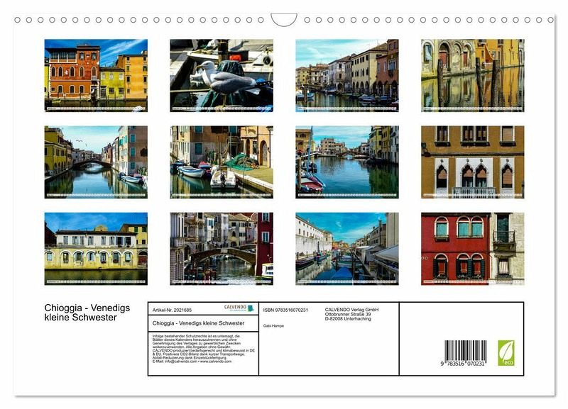 QUALITÄT - Hochwertiger Fotokalender mit 12 wunderschönen Motiven auf lichtbeständigem Bilderdruckpapier, robuste Spiralbindung mit Aufhängebügel.NACHHALTIG - deutliche Abfallreduzierung durch bedarfsgerechte Einzelstückfertigung, umweltfreundliches FSC-zertifiziertes Papier, Produktion in Deutschland, klimabewusste Logistik.PERFEKTES GESCHENK - Kalender für Freunde und Familie, für Kinder und Erwachsene, jung und alt, zu Weihnachten, Geburtstag oder zwischendurch.VIELFALT - Bildkalender in verschiedenen Formaten, z.B. DIN A5, DIN A4, DIN A3 sowie DIN A2. Ob Naturmotiv, Gemälde oder Fotos, ideal für ein persönliches Wohlfühlambiente.Ein Rundgang durch das beschauliche Chioggia von Autor(in): Gabi Hampe