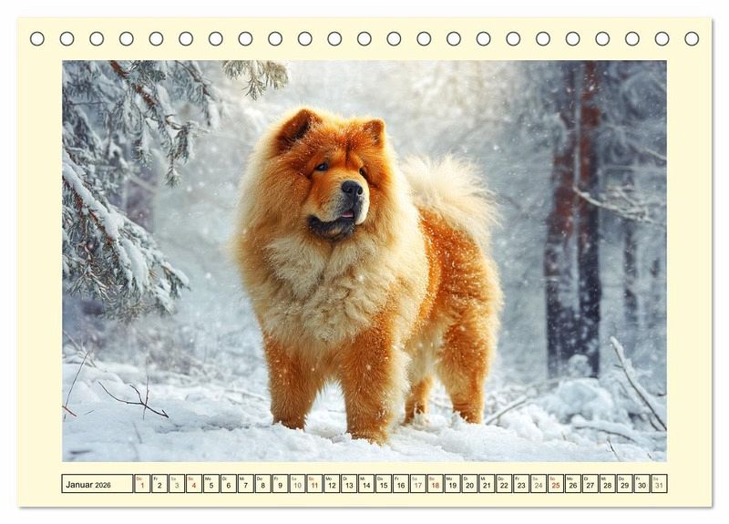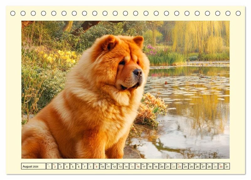 Dieser Kalender ist eine Hommage an die Schönheit und das Wesen des Chow Chow. Einst ein Tempelwächter aus dem alten China, strahlt er bis heute majestätische Ruhe und tiefe Treue aus. Seine weiche Mähne, sein löwenhafter Gang und sein stilles Wesen machen ihn zu einem Symbol von Anmut und Gelassenheit. Alle Bilder wurden mit der Hilfe von KI erstellt und zeigen diese besonderen Hunde in stimmungsvollen und malerischen Szenen.
