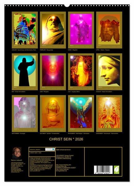 CHRIST SEIN 2014 - der christliche Kunst-Kalender für das neue Kirchenjahr. Alles in unserer Welt wird noch lebendiger und fühlbarer durch Licht und Farbe. Diese erlesene Auswahl an ausdrucksstarken Sakral-Kunst-Bildern möchte Ihnen im neuen Jahr 2014 als Lebens- und Wegbegleiter dienen. Christ Sein bedeutet Gott zu vertrauen, im Glauben an Jesus Christus, den wieder auferstandenen Sohn Gottes.Fühlen und erspüren Sie Ihren Lebensweg, seien Sie liebevoll und authentisch, seien Sie der Mensch, der Sie sind und der Sie aufrichtig sein möchten: Ihr Herz möge dabei Ihr Wegweiser sein, um Ihr Christ Sein NEU zu entdecken: Haben Sie Christus im Herzen! "Ich lebe meine Träume im Hier und Jetzt. Ich liebe den Menschen, der ich in Wahrheit bin und mache mich frei davon, was Andere von mir denken. Dieses Leben ist ein Geschenk - aus Liebe zu mir - dafür bin ich von Herzen dankbar! Ich fühle mein inneres Kind, wie es nach mir ruft, damit ich es jetzt liebevoll in mein Herz aufnehme! Ich nehme mich an, so wie ich bin und so finde und gehe ich meinen ganz individuellen Weg, wie auch immer er aussehen mag. Gott liebt mich in meiner Ganzheit und Einzigartigkeit, so wie ich bin!"Energie-Bilder von Ramon Labusch: International bekannter Energy-ART-Designer und Energie-Künstler für intuitive, visionäre und phantastische Energiekunst und Schwingungsbilder. ENERGIE-KUNST-WEBSEITE: http://www.Healing-Art-Deutschland.de _ ENERGIE-KUNST-SHOP: http://www.Energie-Kunst-Deutschland.de _ LICHT-PORTALE-SHOP: http://www.Licht-Portale.de