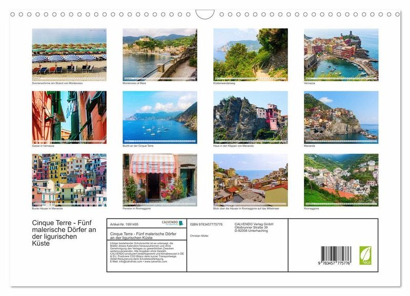 QUALITÄT - Hochwertiger Fotokalender mit 12 wunderschönen Motiven auf lichtbeständigem Bilderdruckpapier, robuste Spiralbindung mit Aufhängebügel.NACHHALTIG - deutliche Abfallreduzierung durch bedarfsgerechte Einzelstückfertigung, umweltfreundliches FSC-zertifiziertes Papier, Produktion in Deutschland, klimabewusste Logistik.PERFEKTES GESCHENK - Kalender für Freunde und Familie, für Kinder und Erwachsene, jung und alt, zu Weihnachten, Geburtstag oder zwischendurch.VIELFALT - Bildkalender in verschiedenen Formaten, z.B. DIN A5, DIN A4, DIN A3 sowie DIN A2. Ob Naturmotiv, Gemälde oder Fotos, ideal für ein persönliches Wohlfühlambiente.fotografische Impressionen von der Cinque Terre von Autor(in): Christian Müller