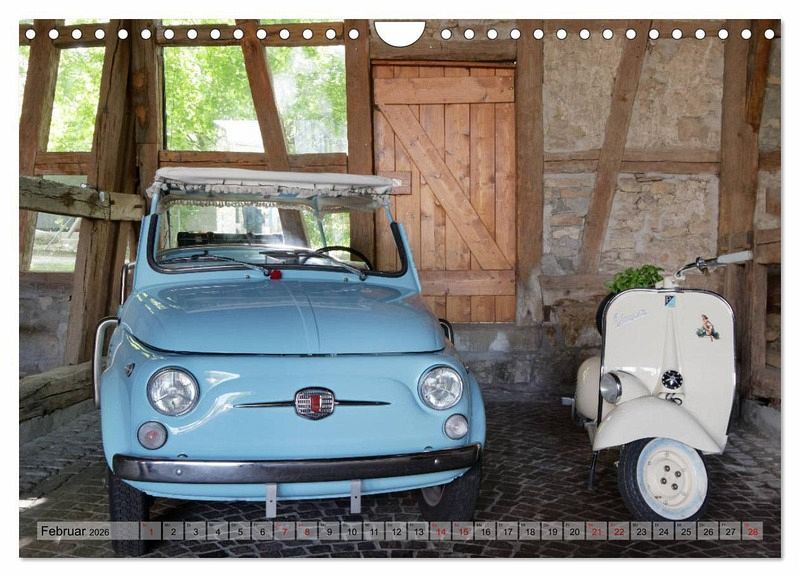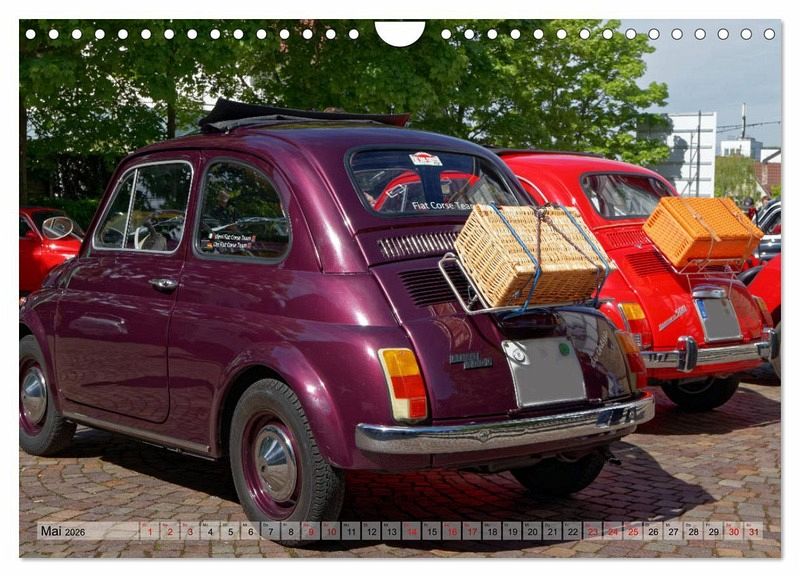 Januar: Links:Fiat Vignale-Cabrio auf Basis des Fiat 500 Rechts: klassischer Fiat 500