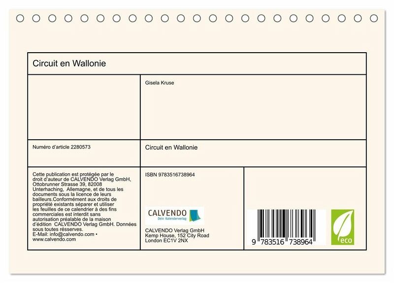 Ce calendrier photo vous emmène mois après mois à la découverte de la Wallonie. Des clichés à couper le souffle vous font découvrir la remarquable ville de Namur, la charmante Grand-Place de Mons et les environs pittoresques de la Meuse à Dinant, lieu de naissance d'Adolphe Sax. Bouillon et Torgny, le village le plus méridional de Belgique, sont également des destinations attrayantes. Et ne manquez pas Spa, la ville de l'eau, et les petits châteaux cachés de Saint Fontaine et Walzin.