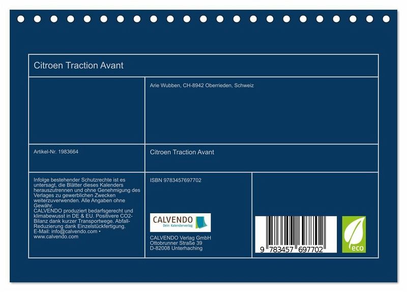 QUALITÄT - Hochwertiger Fotokalender mit 12 wunderschönen Motiven auf lichtbeständigem Bilderdruckpapier, robuste Spiralbindung.NACHHALTIG - deutliche Abfallreduzierung durch bedarfsgerechte Einzelstückfertigung, umweltfreundliches FSC-zertifiziertes Papier, Produktion in Deutschland, klimabewusste Logistik.PERFEKTES GESCHENK - Kalender für Freunde und Familie, für Kinder und Erwachsene, jung und alt, zu Weihnachten, Geburtstag oder zwischendurch.VIELFALT - Bildkalender in verschiedenen Formaten, z.B. DIN A5, DIN A4, DIN A3 sowie DIN A2. Ob Naturmotiv, Gemälde oder Fotos, ideal für ein persönliches Wohlfühlambiente.Mit seiner Gangsterlimousine "Traction Avant" gelang Citroen 1934 einen technologischen Durchbruch. Es war das erste Auto mit Vorderantrieb. Dieses fahrerische Denkmal wurde bis 1957 produziert und hielt viele Rekorde. von Autor(in): Condorito1953