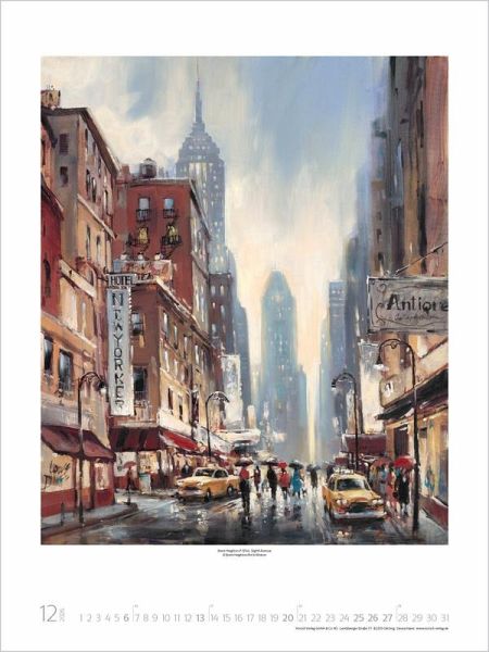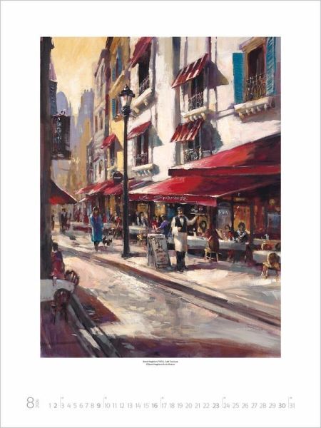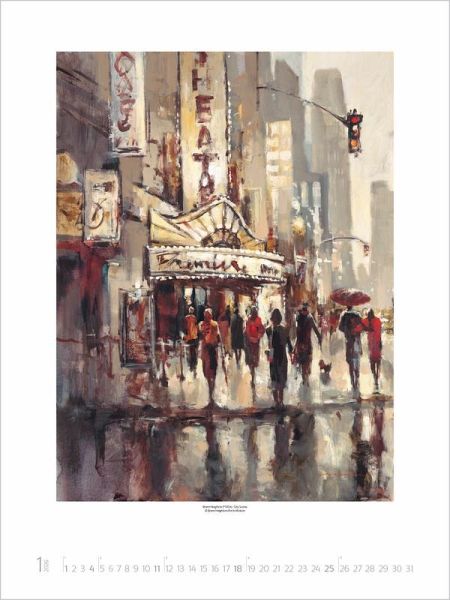 Das Leben in der Stadt setzt der kanadische Maler Brent Heighton im Kalender City Life gekonnt in Szene. Er bannt in seinen pittoresken Straßen- und Barszenen die atmosphärischen Lichtstimmungen des urbanen Lebens in einzigartiger Weise auf die Leinwand und verführt den Betrachter, sich ganz in den romantischen Bildern zu verlieren.