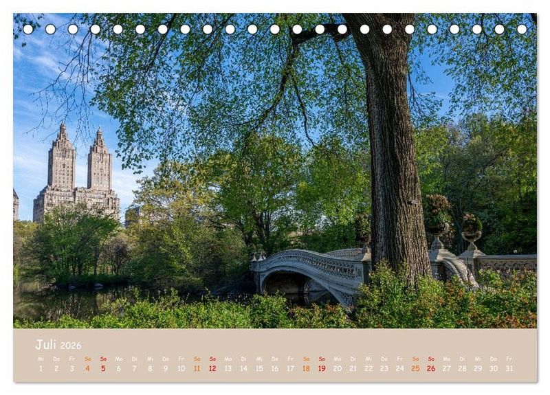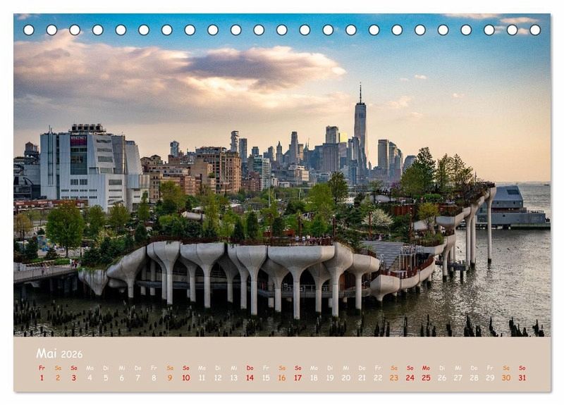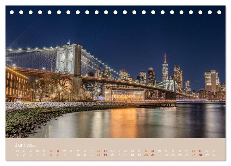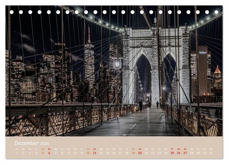 Dieser Kalender präsentiert beeindruckende Ansichten der Metropole aus ungewöhnlichen Perspektiven: von ikonischen Skylines bei Sonnenuntergang über bekannte Wahrzeichen wie die Brooklyn Bridge und das Empire State Building bis hin zu stimmungsvollen Impressionen aus dem Central Park oder der U-Bahn.