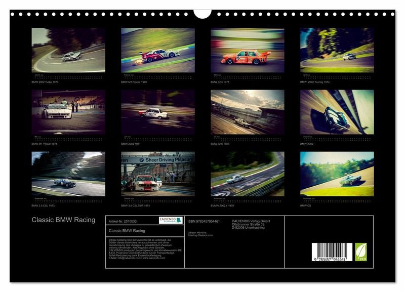Die schnellsten BMW der der 60er und 70er Jahre. Vom legendären 02er im Renntrim über die atemberaubenden M1 Procar und CSL Coupés, bis zum E30 der frühen 80er Jahre. Alle Fahrzeuge vom bekannten Motorsportfotografen Johann Hinrichs in voller Fahrt festgehalten. Dieser Kalender geho?rt zu den Calvendo Top100 Bestsellern.