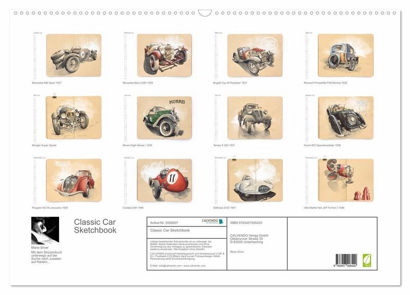 Die Zeichnungen sind bei unzähligen Streifzügen durch Hamburg entstanden. Bewaffnet mit Skizzenbuch, Farben und Tinte fühlte sich die Begegnung mit diesen charmanten und glanzvollen Autos an, wie die Entdeckung eines kostbaren Schatzes. Besonderes Augenmerk ist auf die Herausarbeitung des Charakters und der außergewöhnlichen Linienführung dieser einzigartigen Schmuckstücke gelegt worden. Begeben Sie sich auf eine Zeitreise und lassen Sie sich Monat für Monat begeistern.