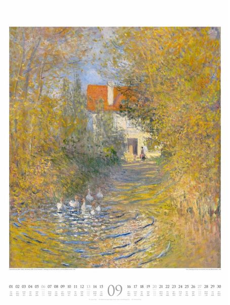 Meisterwerke des berühmten Impressionisten mit dem Schwerpunkt Wasser und LichtKunst-Kalender im großen Hochformat: 50x66 cmHochwertiger Wandkalender mit 200 g/qm Papier und SpiralbindungAuf Papier aus nachhaltiger Forstwirtschaft in Deutschland produziertLeistet einen Beitrag zum Ackermann Firmenwald3-sprachiges Kalendarium: Deutsch, Englisch, Französisch