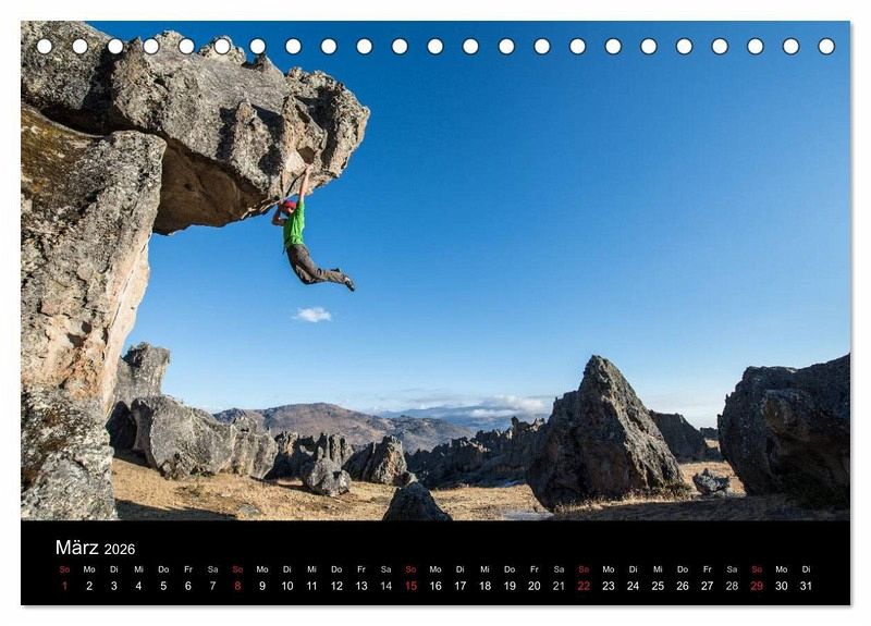 Der Kalender versucht diese Frage zumindest teilweise zu beantworten. Von Bouldern bis zu 6000er Besteigungen in den Anden.