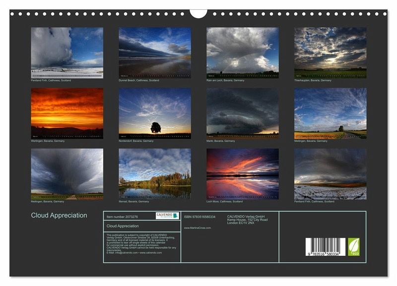 QUALITY - High-quality photo calendar with 12 beautiful images on light-resistant paper, robust spiral binding with hanger.SUSTAINABLE - Significant waste reduction due to print-on-demand production, environmentally friendly FSC-certified paper, produced in the UK, climate-conscious logistical processes.PERFECT GIFT - calendars for friends and family, for children, all ages and all occasions, from Christmas to birthdays and everything in between.LOTS OF CHOICE - Wall calendars in different sizes (DIN A4 and DIN A3), for any topic and personal taste, featuring photography, painting and illustrations.Enjoy and appreciate 12 different clouds throughout the year, author: Martina Cross