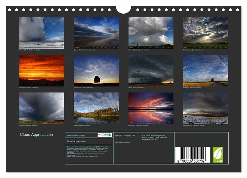 QUALITY - High-quality photo calendar with 12 beautiful images on light-resistant paper, robust spiral binding with hanger.SUSTAINABLE - Significant waste reduction due to print-on-demand production, environmentally friendly FSC-certified paper, produced in the UK, climate-conscious logistical processes.PERFECT GIFT - calendars for friends and family, for children, all ages and all occasions, from Christmas to birthdays and everything in between.LOTS OF CHOICE - Wall calendars in different sizes (DIN A4 and DIN A3), for any topic and personal taste, featuring photography, painting and illustrations.Enjoy and appreciate 12 different clouds throughout the year, author: Martina Cross