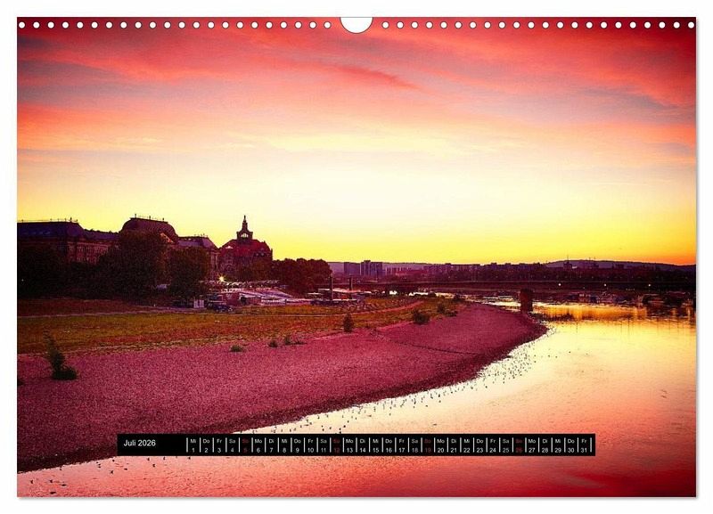 Juli: Morgenrot über dem Elbufer