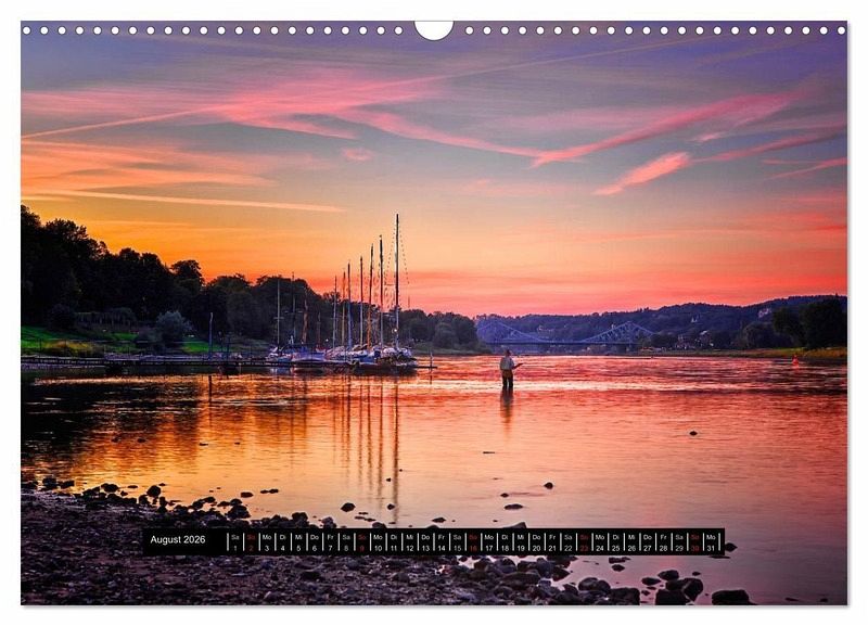 August: Sonnenuntergang über der Elbe