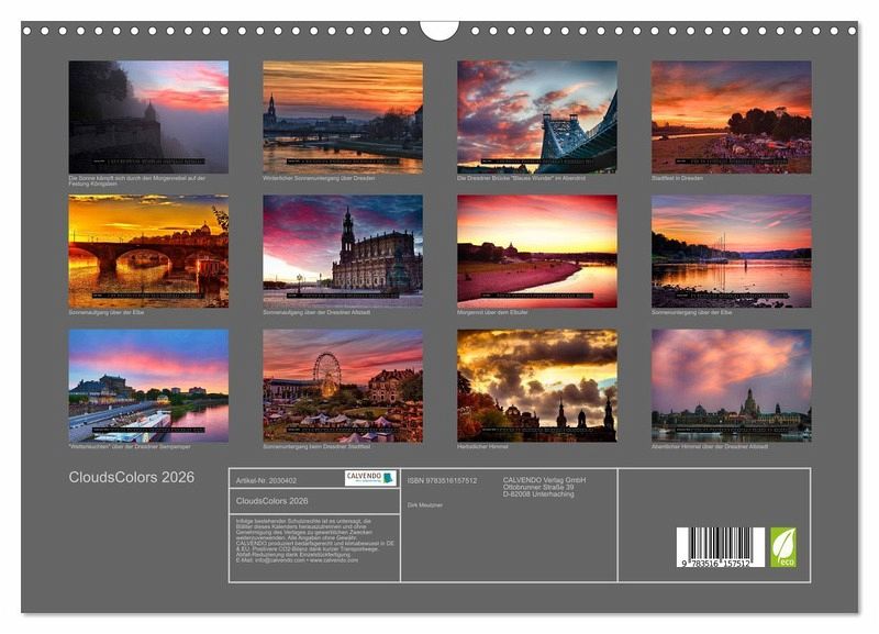 Der Wandkalender "CloudsColors" zeigt dank der wunderschönen atemberaubenden komponierten Bilder, des Fotografen Dirk Meutzner, die Wolken und den Himmel in seinen beeindruckendsten Farben.