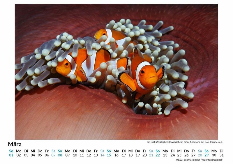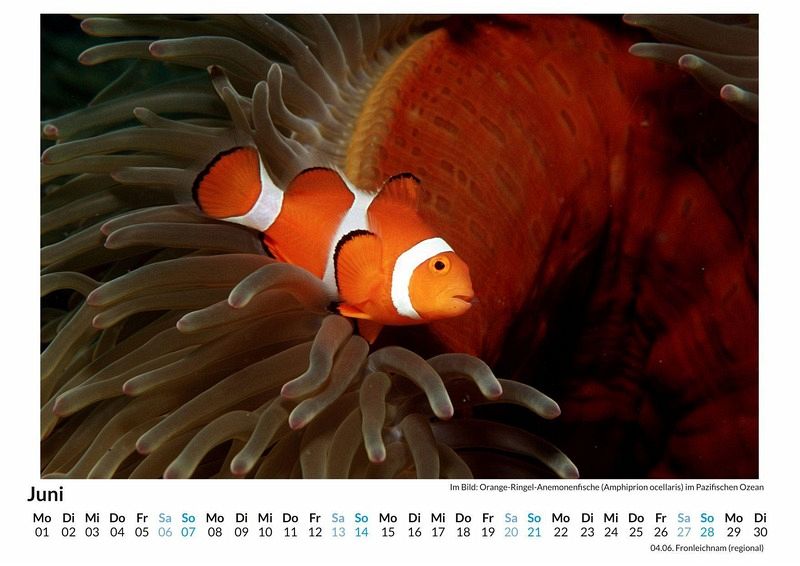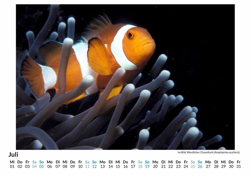 Tauchen Sie ein in die faszinierende Unterwasserwelt mit unserem Clownfisch-Wandkalender! Dieser hochwertige Kalender zeigt 12 atemberaubende Motive des beliebten Meeresbewohners, die jeden Monat aufs Neue begeistern. Gedruckt auf lichtbeständigem, FSC-zertifiziertem Bilderdruckpapier, bringt er die leuchtenden Farben und die lebendige Schönheit der Clownfische direkt in Ihr Zuhause. Perfekt für Naturliebhaber und Meeresfreunde, die sich das ganze Jahr über an der Vielfalt der Ozeane erfreuen möchten. Hergestellt in Deutschland, steht dieser Kalender für Qualität und Nachhaltigkeit. Holen Sie sich jetzt Ihr Stück Unterwasserparadies an die Wand! Hochwertig Erleben Sie ein Jahr voller Eleganz mit unserem Premium-Fotokalender. Jedes der 12 Motive ist auf hochwertigem, lichtbeständigem Bilderdruckpapier gedruckt, um die Lebendigkeit jedes Bildes zu bewahren. Die robuste Spiralbindung gewährleistet Langlebigkeit und einfache Handhabung. Nachhaltig Unser Engagement für die Umwelt spiegelt sich in jedem Exemplar wider. Durch die Produktion auf Abruf reduzieren wir signifikant unseren Abfall. Wir verwenden ausschließlich umweltfreundliches, FSC-zertifiziertes Papier. Stolz gefertigt in Deutschland, achten wir bei unserer Logistik auf Klimaschutz, um unseren ökologischen Fußabdruck zu minimieren. Das ideale Geschenk Dieser Kalender ist das perfekte Präsent für jeden Anlass - ob Weihnachten, Geburtstage oder einfach als liebevolle Aufmerksamkeit zwischendurch. Geeignet für Freunde, Familie, Kinder und Erwachsene gleichermaßen, bereichert er jedes Zuhause mit seiner Vielfalt und Schönheit, unabhängig vom Alter der Beschenkten.