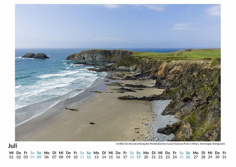 Entdecken Sie die atemberaubende Küstenlandschaft von Wales mit unserem exklusiven Coast Path Wandkalender! Lassen Sie sich Monat für Monat von 12 sorgfältig ausgewählten Motiven verzaubern, die die wilde Schönheit und unberührte Natur des Wales Coast Path einfangen. Gedruckt auf hochwertigem, lichtbeständigem Bilderdruckpapier, bringt dieser Kalender die Magie der walisischen Küste direkt in Ihr Zuhause. Nachhaltigkeit liegt uns am Herzen: Unsere Kalender werden in Deutschland auf FSC-zertifiziertem Papier produziert. Perfekt als Geschenk oder für Ihr eigenes Zuhause - holen Sie sich ein Stück Wales an die Wand! Hochwertig Erleben Sie ein Jahr voller Eleganz mit unserem Premium-Fotokalender. Jedes der 12 Motive ist auf hochwertigem, lichtbeständigem Bilderdruckpapier gedruckt, um die Lebendigkeit jedes Bildes zu bewahren. Die robuste Spiralbindung gewährleistet Langlebigkeit und einfache Handhabung. Nachhaltig Unser Engagement für die Umwelt spiegelt sich in jedem Exemplar wider. Durch die Produktion auf Abruf reduzieren wir signifikant unseren Abfall. Wir verwenden ausschließlich umweltfreundliches, FSC-zertifiziertes Papier. Stolz gefertigt in Deutschland, achten wir bei unserer Logistik auf Klimaschutz, um unseren ökologischen Fußabdruck zu minimieren. Das ideale Geschenk Dieser Kalender ist das perfekte Präsent für jeden Anlass - ob Weihnachten, Geburtstage oder einfach als liebevolle Aufmerksamkeit zwischendurch. Geeignet für Freunde, Familie, Kinder und Erwachsene gleichermaßen, bereichert er jedes Zuhause mit seiner Vielfalt und Schönheit, unabhängig vom Alter der Beschenkten.