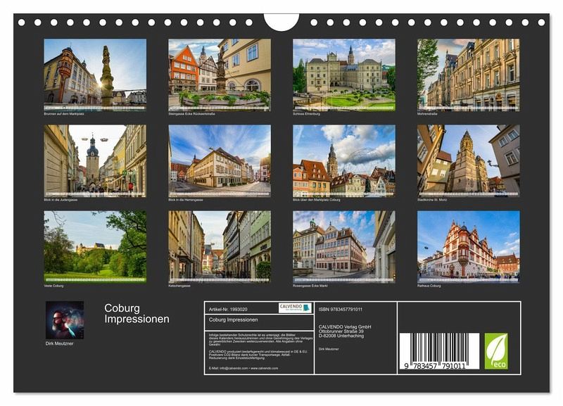 Der Fotograf Dirk Meutzner nimmt Sie mit auf eine Bilderreise der besonderen Art in die Stadt Coburg. Erfreuen Sie sich Monat für Monat an den wunderschönen Bildern dieser Stadt. Coburg ist eine kreisfreie Stadt im bayerischen Regierungsbezirk Oberfranken und Sitz des Landratsamtes Coburg. Sie zählt zur Metropolregion Nürnberg.