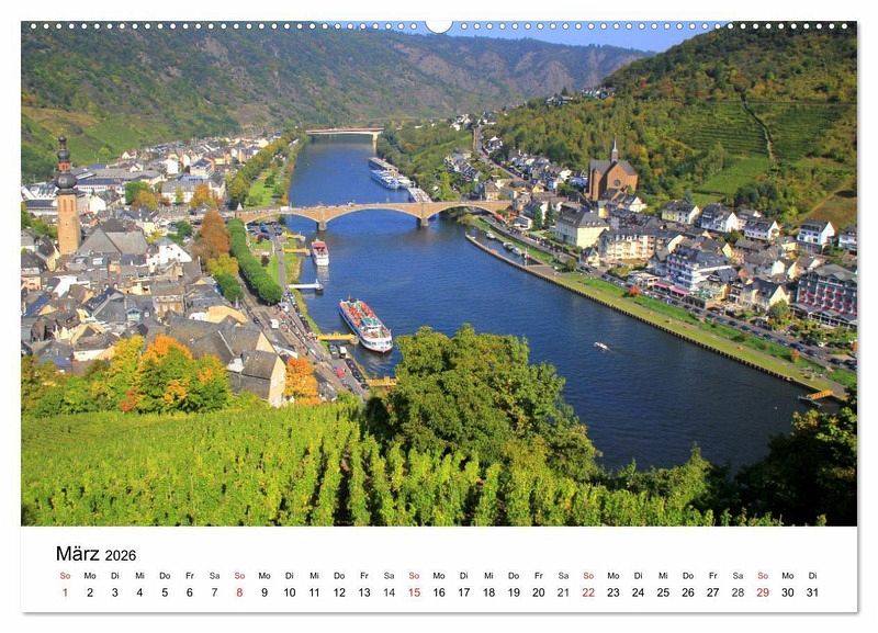 Cochem zählt zu den bekanntesten und schönsten Orten an der Mosel. Das Markenzeichen ist die Reichsburg. Sie ragt hoch über der Stadt, umgeben von Weinbergen. Wunderschöne Fachwerkhäuser, verträumte Gassen und viele kleine Geschäfte und Lokale prägen dieses herrliche kleine Städtchen. Überzeugen sie sich von diesen Eindrücken in meinem Kalender.