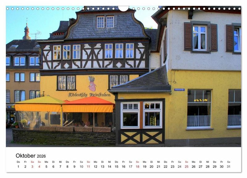 Cochem zählt zu den bekanntesten und schönsten Orten an der Mosel. Das Markenzeichen ist die Reichsburg. Sie ragt hoch über der Stadt, umgeben von Weinbergen. Wunderschöne Fachwerkhäuser, verträumte Gassen und viele kleine Geschäfte und Lokale prägen dieses herrliche kleine Städtchen. Überzeugen sie sich von diesen Eindrücken in meinem Kalender.