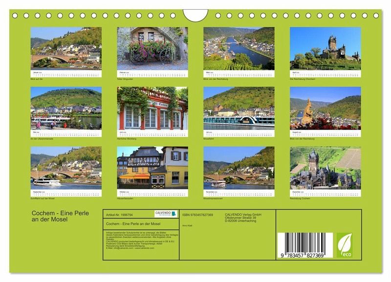 QUALITÄT - Hochwertiger Fotokalender mit 12 wunderschönen Motiven auf lichtbeständigem Bilderdruckpapier, robuste Spiralbindung mit Aufhängebügel.NACHHALTIG - deutliche Abfallreduzierung durch bedarfsgerechte Einzelstückfertigung, umweltfreundliches FSC-zertifiziertes Papier, Produktion in Deutschland, klimabewusste Logistik.PERFEKTES GESCHENK - Kalender für Freunde und Familie, für Kinder und Erwachsene, jung und alt, zu Weihnachten, Geburtstag oder zwischendurch.VIELFALT - Bildkalender in verschiedenen Formaten, z.B. DIN A5, DIN A4, DIN A3 sowie DIN A2. Ob Naturmotiv, Gemälde oder Fotos, ideal für ein persönliches Wohlfühlambiente.Ein Tag in Cochem an der Mosel von Autor(in): Arno Klatt