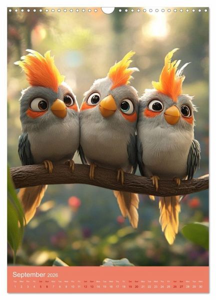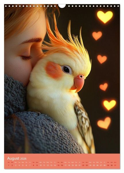 Cheeky, fluffy and simply irresistible - this calendar brings the lively world of cockatiels directly to your wall! Using state-of-the-art AI, the charming birds have been brought to life in a unique, detailed style. Each illustration perfectly captures the playful, noisy and adorable moments of these feathered personalities.