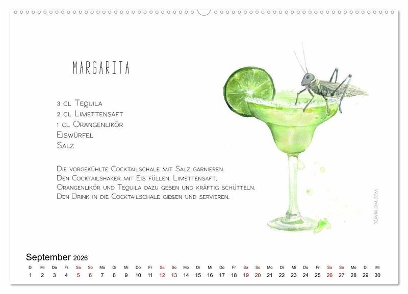 Handgemalte Aquarell Illustrationen von Cocktails mit Rezepten zum Selbermixen.