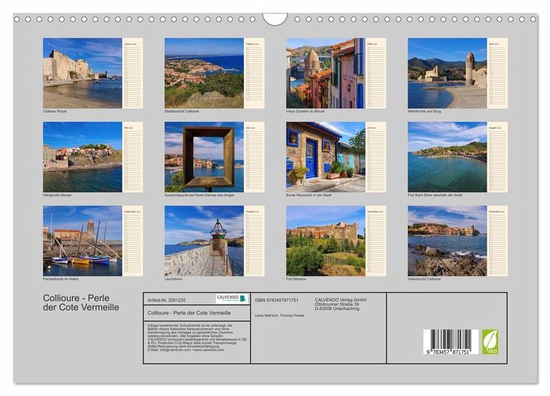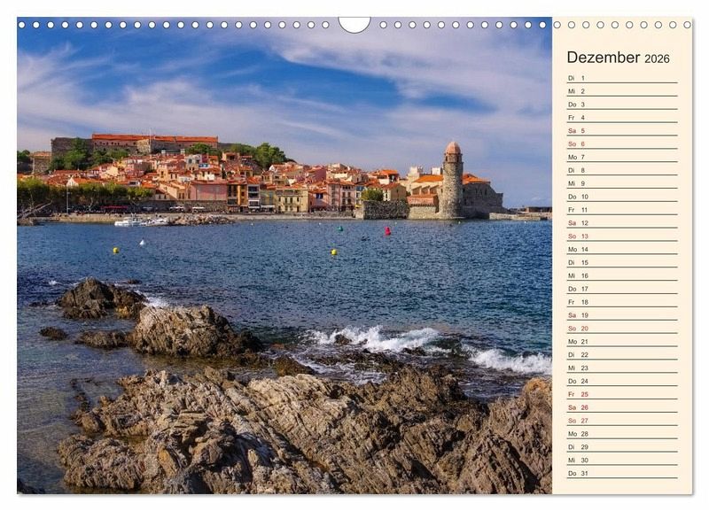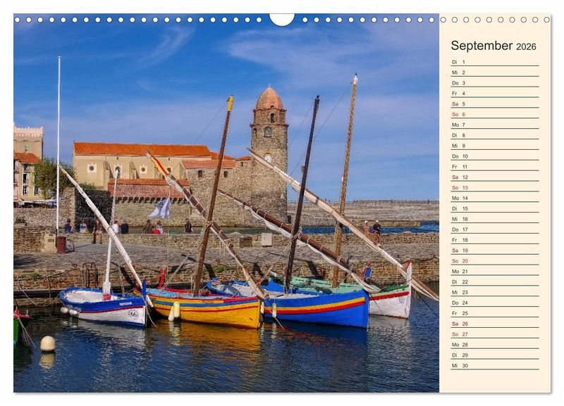 Collioure ist zweifellos der schönste Ort der Côte Vermeille. Die malerische Kulisse aus alten Befestigungen, Kirchen und den engen Gassen der Altstadt hat ihren ganz eigenen Charme. Auch die berühmten Maler Matisse, Picasso und Derain waren fasziniert von diesem Ort. Auf ihre Spuren trifft man an jeder Ecke und findet so die schönsten Fotomotive für diesen Kalender mit Planerfunktion.