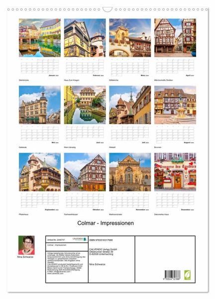 Dieser herausragende Kalender zeigt jeden Monat wunderschöne Motive von der bekanntesten Stadt im Elsass - Colmar. Das Altstadtbild wird geprägt von den typisch elsässischen Fachwerkhäusern aus dem Mittelalter, Klein-Venedig mit den Steinbrücken, der römisch-katholischen Stiftskirche und einem Schmuckstück der Renaissance - das Pfisterhaus und lädt zu einem Bummel ein. Lassen Sie sich inspirieren und gehen Sie mit auf eine Entdeckungsreise.