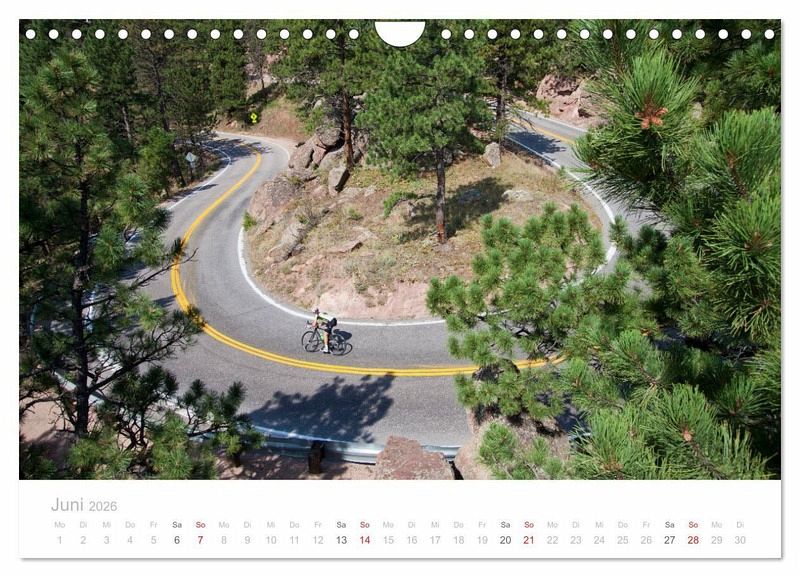 In den Rocky Mountains von Colorado warten auf Rennradfahrer große Herausforderungen. An der Front Range, zwischen Boulder und Colorado Springs klettern die Bergstraßen auf über 4000 Meter hinauf. In seinem neuen Kalender zeigt der Radsportjournalist und Fotograf Matthias Rotter unberührte Natur, bizarre Felslandschaften und - im wahrsten Sinne - atemberaubende Panoramen. Denn neben der Länge der Anstiege lässt die dünne Luft jeden Tritt zur Qual werden. Zum Beispiel am Gipfel des Pikes Peak, mit 4301 Metern die zweithöchste Straße in den USA. Oder auf den rauen Gravelroads im Hinterland der Sportstadt Boulder. Vertikale Rekorde mit jeder Meile garantiert!