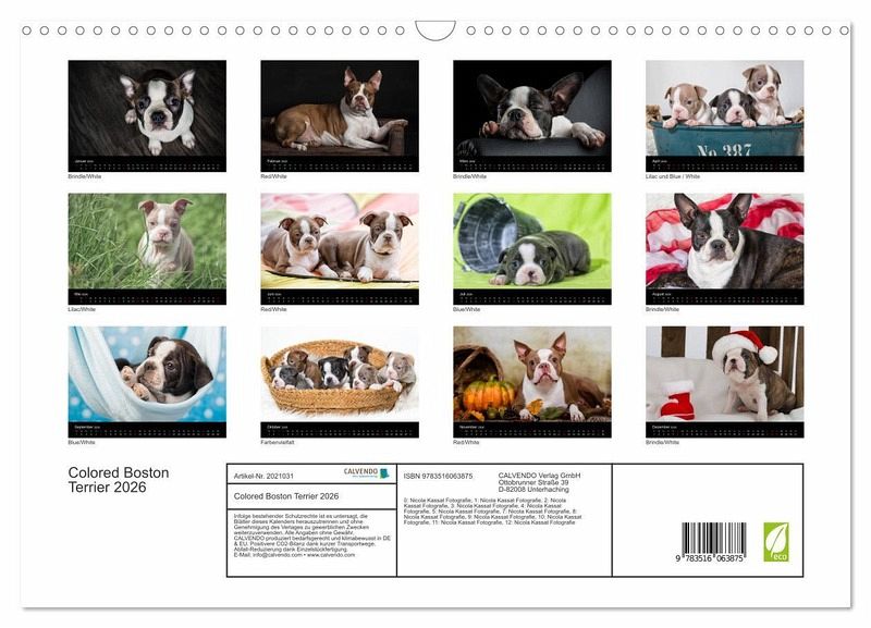 QUALITÄT - Hochwertiger Fotokalender mit 12 wunderschönen Motiven auf lichtbeständigem Bilderdruckpapier, robuste Spiralbindung mit Aufhängebügel.NACHHALTIG - deutliche Abfallreduzierung durch bedarfsgerechte Einzelstückfertigung, umweltfreundliches FSC-zertifiziertes Papier, Produktion in Deutschland, klimabewusste Logistik.PERFEKTES GESCHENK - Kalender für Freunde und Familie, für Kinder und Erwachsene, jung und alt, zu Weihnachten, Geburtstag oder zwischendurch.VIELFALT - Bildkalender in verschiedenen Formaten, z.B. DIN A5, DIN A4, DIN A3 sowie DIN A2. Ob Naturmotiv, Gemälde oder Fotos, ideal für ein persönliches Wohlfühlambiente.Der Boston Terrier in seiner Farbvielfalt von Autor(in): Nicola Kassat Fotografie