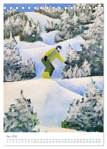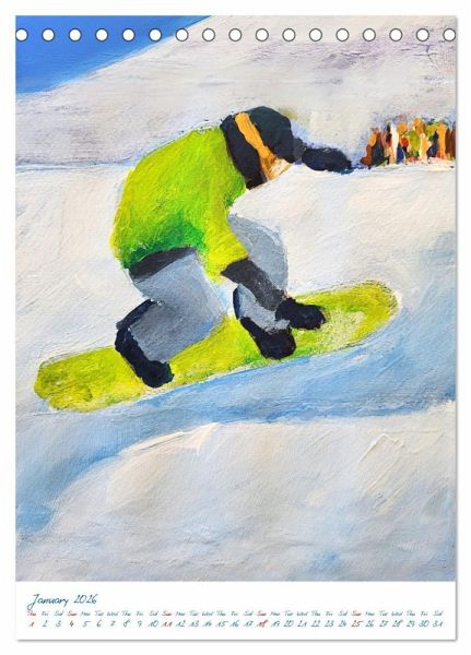 QUALITY - High-quality photo calendar with 12 beautiful images on light-resistant paper, robust spiral binding.SUSTAINABLE - Significant waste reduction due to print-on-demand production, environmentally friendly FSC-certified paper, produced locally, climate-conscious logistical processes.PERFECT GIFT - calendars for friends and family, for children, all ages and all occasions, from Christmas to birthdays and everything in between.LOTS OF CHOICE - Wall calendars in different sizes (DIN A4 and DIN A3), for any topic and personal taste, featuring photography, painting and illustrations.Painted pictures of snowboarding. von Autor(in): Michaela Spreider