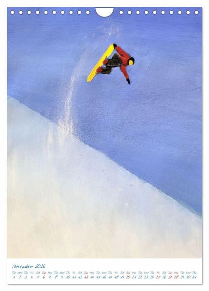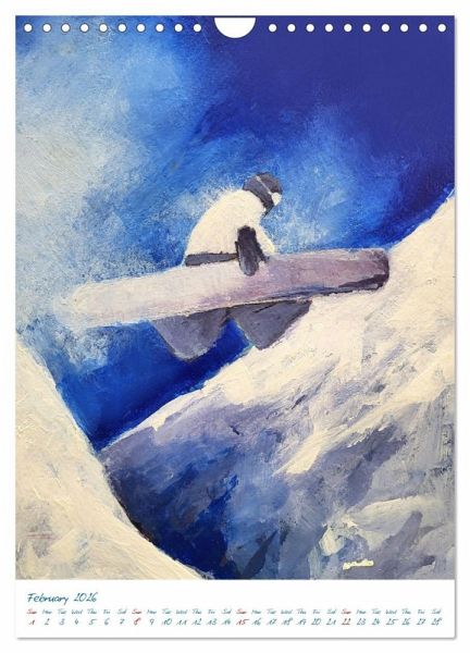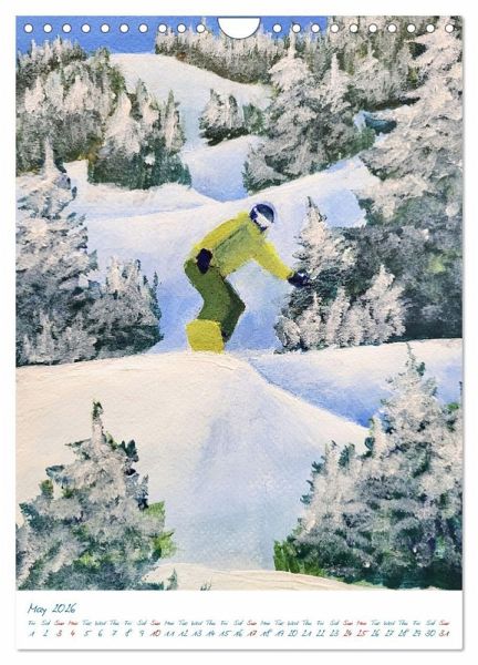 QUALITY - High-quality photo calendar with 12 beautiful images on light-resistant paper, robust spiral binding with hanger.SUSTAINABLE - Significant waste reduction due to print-on-demand production, environmentally friendly FSC-certified paper, produced in the UK, climate-conscious logistical processes.PERFECT GIFT - calendars for friends and family, for children, all ages and all occasions, from Christmas to birthdays and everything in between.LOTS OF CHOICE- Wall calendars in different sizes (DIN A4 and DIN A3), for any topic and personal taste, featuring photography, painting and illustrations.Painted pictures of snowboarding., author: Michaela Spreider