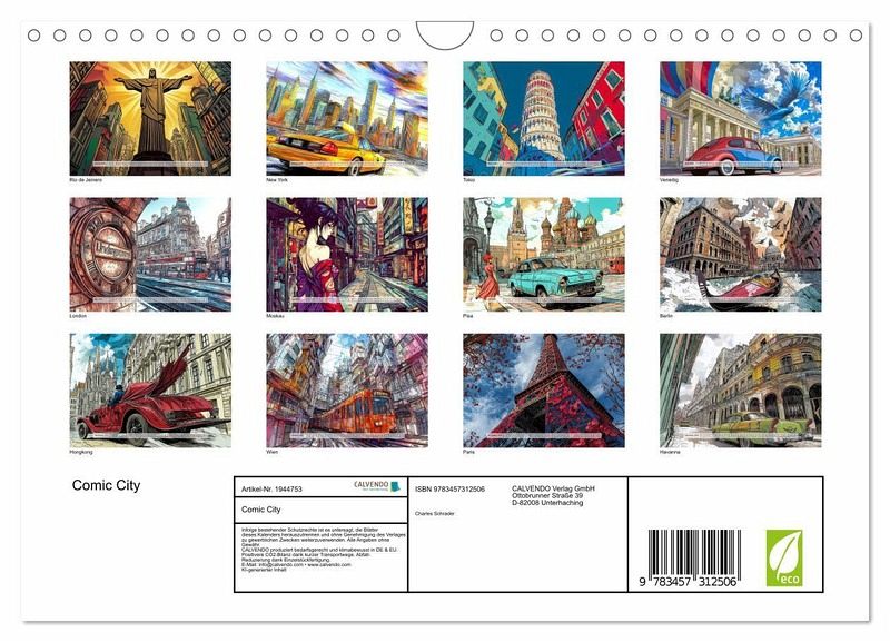 QUALITÄT - Hochwertiger Fotokalender mit 12 wunderschönen Motiven auf lichtbeständigem Bilderdruckpapier, robuste Spiralbindung mit Aufhängebügel.NACHHALTIG - deutliche Abfallreduzierung durch bedarfsgerechte Einzelstückfertigung, umweltfreundliches FSC-zertifiziertes Papier, Produktion in Deutschland, klimabewusste Logistik.PERFEKTES GESCHENK - Kalender für Freunde und Familie, für Kinder und Erwachsene, jung und alt, zu Weihnachten, Geburtstag oder zwischendurch.VIELFALT - Bildkalender in verschiedenen Formaten, z.B. DIN A5, DIN A4, DIN A3 sowie DIN A2. Ob Naturmotiv, Gemälde oder Fotos, ideal für ein persönliches Wohlfühlambiente.Internationale Städte im Comic Style von Autor(in): Charles Schrader
