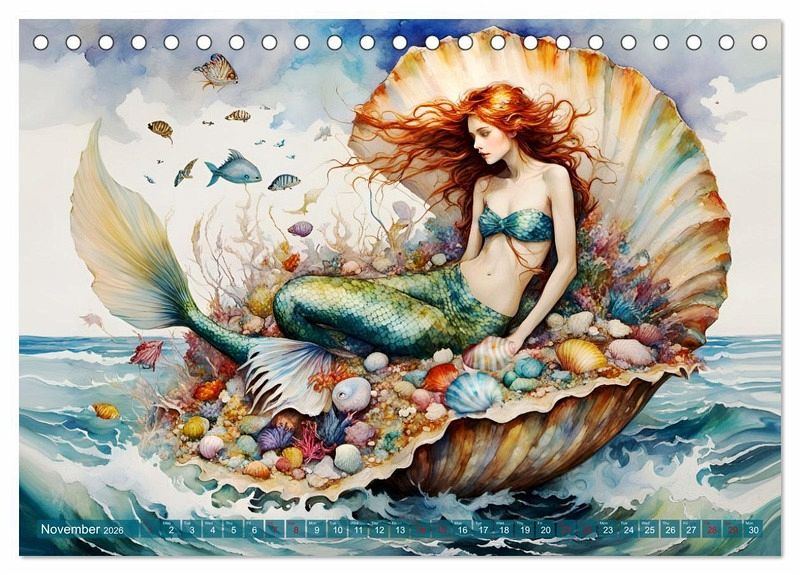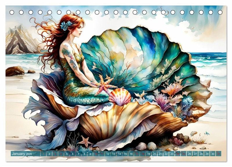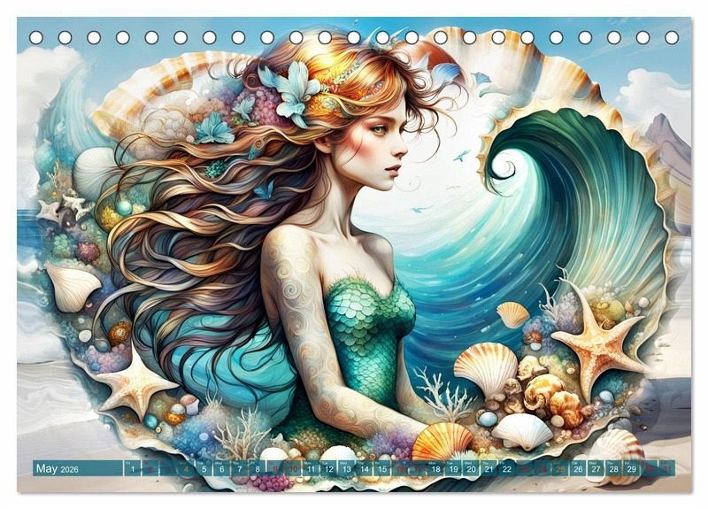 Let yourself be enchanted by our unique calendar, created with the help of artificial intelligence. Each image is a tribute to the connection between sea and land, captured in a timeless moment of tranquillity and beauty. A perfect gift for all mermaid lovers and dream travellers.