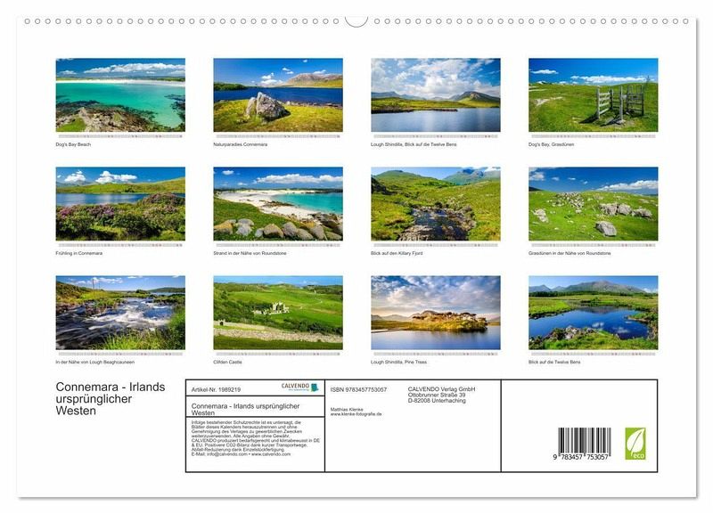 PREMIUM-LINIE - Brillanter Fotokalender mit 12 wunderschönen Motiven, Kunstdruck in Hochglanz in Museumsqualität.QUALITÄT - edle Materialien, stabile Rückwand mit 2 innovativen Einstecktaschen für eine optimale Präsentation an der Wand.NACHHALTIG - deutliche Abfallreduzierung durch bedarfsgerechte Einzelstückfertigung, umweltfreundliches FSC-zertifiziertes Papier, Produktion in Deutschland, klimabewusste Logistik.PERFEKTES GESCHENK - Kalender für Freunde und Familie, für Kinder und Erwachsene, jung und alt, zu Weihnachten, Geburtstag oder zwischendurch.Die ursprüngliche Landschaft Connemaras am Rande des Atlantiks übt von jeher eine Faszination auf die Besucher aus. von Autor(in): Matthias Klenke
