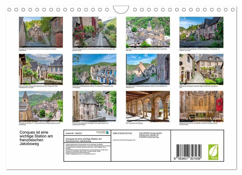 QUALITÄT - Hochwertiger Fotokalender mit 12 wunderschönen Motiven auf lichtbeständigem Bilderdruckpapier, robuste Spiralbindung mit Aufhängebügel.NACHHALTIG - deutliche Abfallreduzierung durch bedarfsgerechte Einzelstückfertigung, umweltfreundliches FSC-zertifiziertes Papier, Produktion in Deutschland, klimabewusste Logistik.PERFEKTES GESCHENK - Kalender für Freunde und Familie, für Kinder und Erwachsene, jung und alt, zu Weihnachten, Geburtstag oder zwischendurch.VIELFALT - Bildkalender in verschiedenen Formaten, z.B. DIN A5, DIN A4, DIN A3 sowie DIN A2. Ob Naturmotiv, Gemälde oder Fotos, ideal für ein persönliches Wohlfühlambiente.Conques, eine wichtige Station am Jakobsweg von Autor(in): Bodo Schmidt