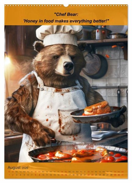 Discover the ultimate kitchen companion for the coming year, our unique annual calendar with a heart warming collection of funny animal motifs standing at the stove and cooking. This calendar is not only a handy helper to keep track of all your important dates, but also a daily source of inspiration and smiles. Ideal for animal lovers, amateur cooks or anyone who could use an extra dose of joy in their kitchen. Give yourself or your loved ones a gift that will bring joy all year round. Get your annual calendar, created with AI, with funny animal motifs at the stove now, because every day deserves a moment of smiles. The ideal gift for all cooking and kitchen freaks.