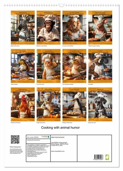QUALITY - High-quality photo calendar with 12 beautiful images on light-resistant paper, robust spiral binding with hanger.SUSTAINABLE - Significant waste reduction due to print-on-demand production, environmentally friendly FSC-certified paper, produced in the UK, climate-conscious logistical processes.PERFECT GIFT - calendars for friends and family, for children, all ages and all occasions, from Christmas to birthdays and everything in between.LOTS OF CHOICE - Wall calendars in different sizes (DIN A4 and DIN A3), for any topic and personal taste, featuring photography, painting and illustrations.Get inspired by funny animals in the kitchen, author: Peter Rübsamen