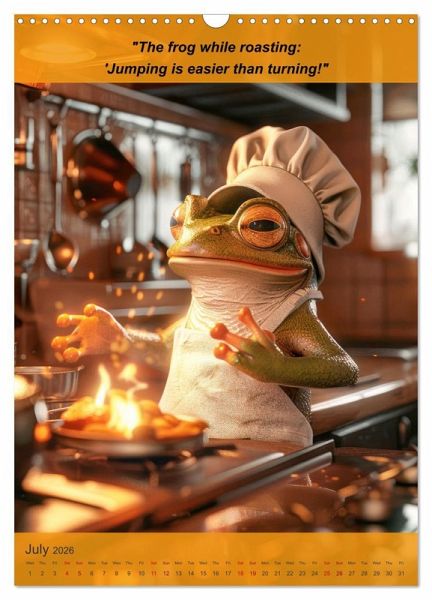 Discover the ultimate kitchen companion for the coming year, our unique annual calendar with a heart warming collection of funny animal motifs standing at the stove and cooking. This calendar is not only a handy helper to keep track of all your important dates, but also a daily source of inspiration and smiles. Ideal for animal lovers, amateur cooks or anyone who could use an extra dose of joy in their kitchen. Give yourself or your loved ones a gift that will bring joy all year round. Get your annual calendar, created with AI, with funny animal motifs at the stove now, because every day deserves a moment of smiles. The ideal gift for all cooking and kitchen freaks.