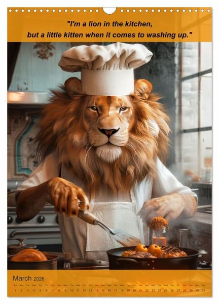 QUALITY - High-quality photo calendar with 12 beautiful images on light-resistant paper, robust spiral binding with hanger.SUSTAINABLE - Significant waste reduction due to print-on-demand production, environmentally friendly FSC-certified paper, produced in the UK, climate-conscious logistical processes.PERFECT GIFT - calendars for friends and family, for children, all ages and all occasions, from Christmas to birthdays and everything in between.LOTS OF CHOICE - Wall calendars in different sizes (DIN A4 and DIN A3), for any topic and personal taste, featuring photography, painting and illustrations.Get inspired by funny animals in the kitchen, author: Peter Rübsamen