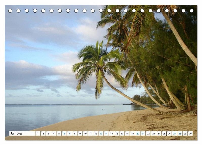 Strahlend weiße Sandstrände vor hügeliger Landschaft, Kokospalmen umgeben von türkisblauem bis smaragdgrünem klaren Wasser, überdimensionale Muscheln und bunte Korallen charakterisieren die Cookinseln, die aus einer weit verstreuten Inselgruppe im Südpazifik bestehen. Weniger als 20.000 Menschen leben auf den Inseln, die bisher vom Massentourismus verschont geblieben sind. Hier kann man noch ursprüngliches unverfälschtes polynesisches Flair in einer beinahe unwirklich schönen Landschaft erleben. Ein Bildkalender des Globetrotters und Fotografen Rick Astor.