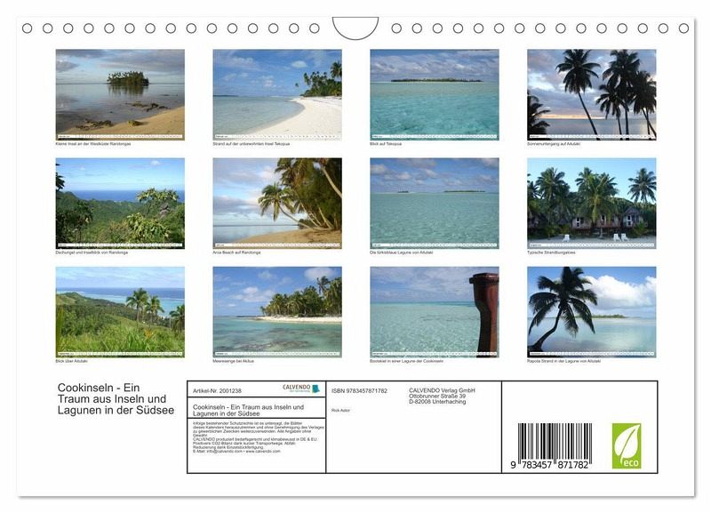 QUALITÄT - Hochwertiger Fotokalender mit 12 wunderschönen Motiven auf lichtbeständigem Bilderdruckpapier, robuste Spiralbindung mit Aufhängebügel.NACHHALTIG - deutliche Abfallreduzierung durch bedarfsgerechte Einzelstückfertigung, umweltfreundliches FSC-zertifiziertes Papier, Produktion in Deutschland, klimabewusste Logistik.PERFEKTES GESCHENK - Kalender für Freunde und Familie, für Kinder und Erwachsene, jung und alt, zu Weihnachten, Geburtstag oder zwischendurch.VIELFALT - Bildkalender in verschiedenen Formaten, z.B. DIN A5, DIN A4, DIN A3 sowie DIN A2. Ob Naturmotiv, Gemälde oder Fotos, ideal für ein persönliches Wohlfühlambiente.Die schönsten Lagunen der Welt gehören zu den Cookinseln: Ursprüngliche Palmeninseln, einsame Strände und türkisblaues Meer abseits der gängigen Tourismusziele. von Autor(in): Rick Astor