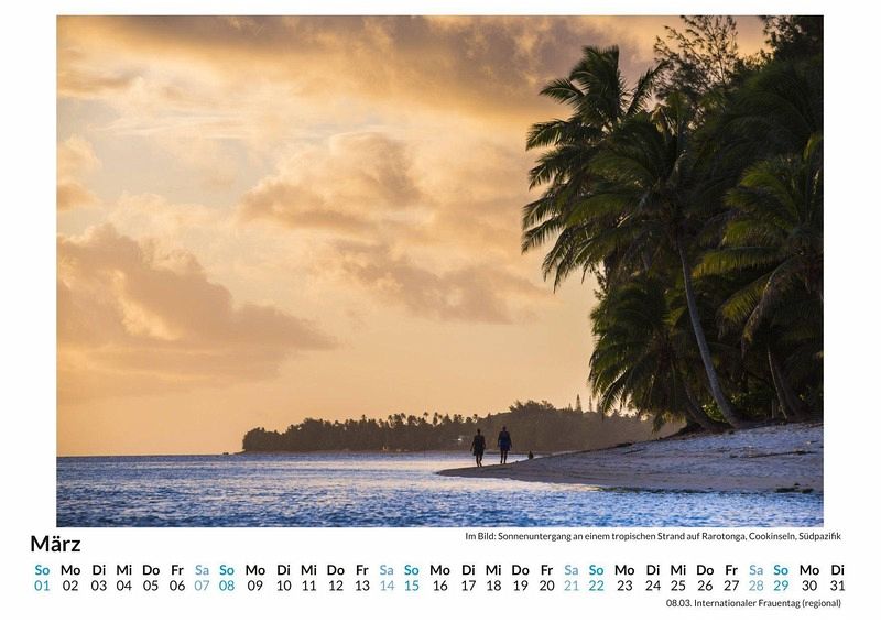 Entdecken Sie die paradiesische Schönheit der Cookinseln mit unserem exklusiven Wandkalender! Lassen Sie sich Monat für Monat von atemberaubenden Stränden, türkisblauem Wasser und üppiger Natur verzaubern. Jedes der 12 sorgfältig ausgewählten Motive fängt die Magie dieser Trauminseln perfekt ein und bringt Urlaubsfeeling direkt in Ihr Zuhause. Gedruckt auf hochwertigem, lichtbeständigem Bilderdruckpapier, bleibt die Farbenpracht das ganze Jahr über erhalten. Nachhaltig in Deutschland auf FSC-zertifiziertem Papier produziert, ist dieser Kalender nicht nur ein optisches Highlight, sondern auch umweltfreundlich. Gönnen Sie sich oder Ihren Liebsten ein Stück Südsee für die Wand! Hochwertig Erleben Sie ein Jahr voller Eleganz mit unserem Premium-Fotokalender. Jedes der 12 Motive ist auf hochwertigem, lichtbeständigem Bilderdruckpapier gedruckt, um die Lebendigkeit jedes Bildes zu bewahren. Die robuste Spiralbindung gewährleistet Langlebigkeit und einfache Handhabung. Nachhaltig Unser Engagement für die Umwelt spiegelt sich in jedem Exemplar wider. Durch die Produktion auf Abruf reduzieren wir signifikant unseren Abfall. Wir verwenden ausschließlich umweltfreundliches, FSC-zertifiziertes Papier. Stolz gefertigt in Deutschland, achten wir bei unserer Logistik auf Klimaschutz, um unseren ökologischen Fußabdruck zu minimieren. Das ideale Geschenk Dieser Kalender ist das perfekte Präsent für jeden Anlass - ob Weihnachten, Geburtstage oder einfach als liebevolle Aufmerksamkeit zwischendurch. Geeignet für Freunde, Familie, Kinder und Erwachsene gleichermaßen, bereichert er jedes Zuhause mit seiner Vielfalt und Schönheit, unabhängig vom Alter der Beschenkten.