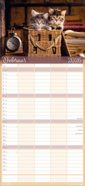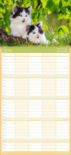 - Vorwitzige Stubentiger für jede Wand: Der große Katzen-Familienkalender 2026- Mit 12 unwiderstehlich süßen Katzenfotos, vom verspielten Katzenbaby bis hin zur schläfrigen Kuschel-Katze- Kalender für Familien mit besonderen Ansprüchen: Inklusive Feiertagen aus Deutschland/Österreich/Schweiz, Schulferienübersicht und 3-Monats-Vorschau auf das Folgejahr- Gut gelaunt durchs Jahr, mit unserem coolsten Familienplaner: 5 Spalten Platz für alles, was wichtig ist, im praktischen 22 x 48 cm Hochformat- Kalender, die einfach tierisch gut ankommen: Die Marke Weingarten im Athesia Kalenderverlag
