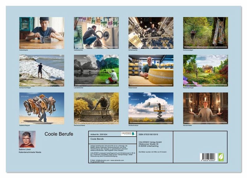 Was macht ein Gabelstapler? Er stapelt Gabeln... Und was macht ein Wolkenkratzer? Na, er kratzt an den Wolken! Hört sich an wie Berufe, sind aber gar keine. Die Autorin hat mit Hilfe von KI Bilder von Menschen mit diesen skurrilen "Berufen" erschaffen.