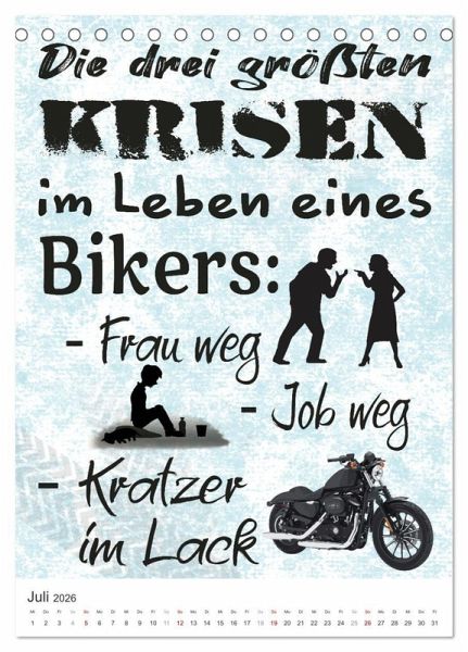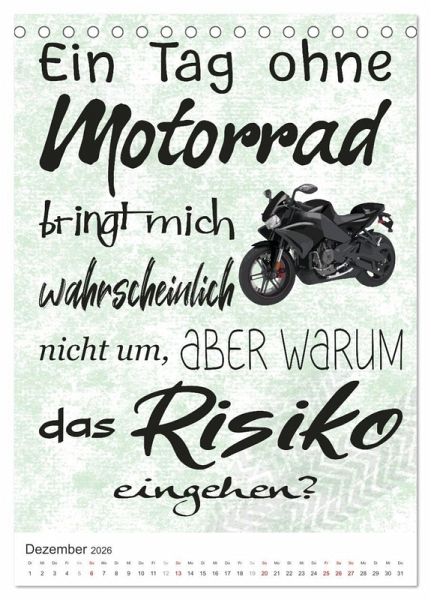 Coole und witzige Biker-Sprüche, gestaltet im Handlettering-Stil, bringen Sie Monat für Monat zum Schmunzeln. Eine tolle Geschenkidee für alle Motorradfahrerinnen und Motorradfahrer.