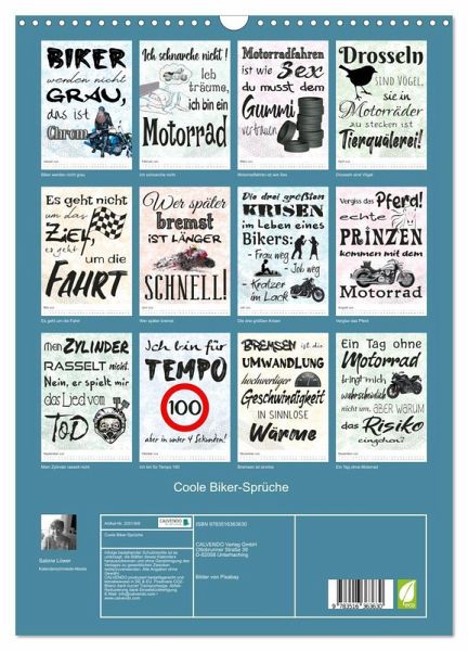 QUALITÄT - Hochwertiger Fotokalender mit 12 wunderschönen Motiven auf lichtbeständigem Bilderdruckpapier, robuste Spiralbindung mit Aufhängebügel.NACHHALTIG - deutliche Abfallreduzierung durch bedarfsgerechte Einzelstückfertigung, umweltfreundliches FSC-zertifiziertes Papier, Produktion in Deutschland, klimabewusste Logistik.PERFEKTES GESCHENK - Kalender für Freunde und Familie, für Kinder und Erwachsene, jung und alt, zu Weihnachten, Geburtstag oder zwischendurch.VIELFALT - Bildkalender in verschiedenen Formaten, z.B. DIN A5, DIN A4, DIN A3 sowie DIN A2. Ob Naturmotiv, Gemälde oder Fotos, ideal für ein persönliches Wohlfühlambiente.Sprüche rund ums Motorradfahren von Autor(in): Sabine Löwer